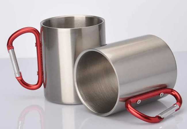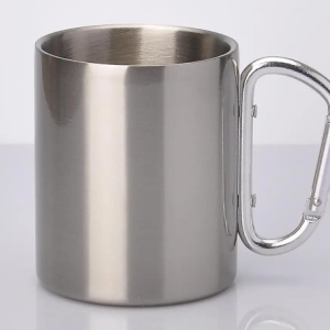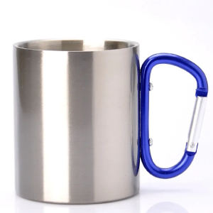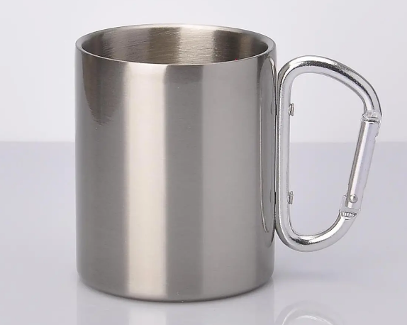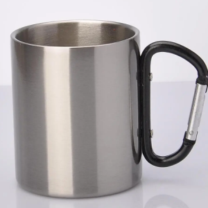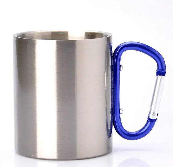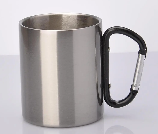 Чашка металева, срібна з карабіном, 300мл Кружка срібна, карабін в кольорах . Діаметр: 7,4 см. Висота: 9 см Об’єм: 300 мл Індивідуальна упаковка – коробочка із щільного мікрогофрокартону. Готові чашки з нанесеним зображенням мити вручну