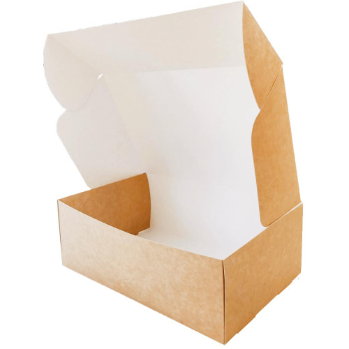 Самозбірна коробка з крафт картону 250 г/м2 . Розмір коробки 280*180*100 мм (Д*В*Ш). Наліпка із самоклеючого паперу 90*50 мм з матовою ламінацією . Ціна вказана за одиницю.