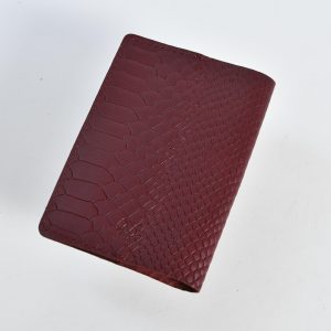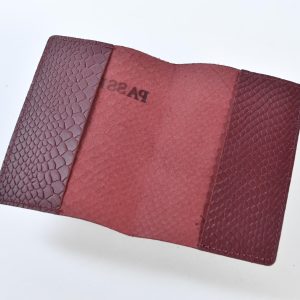 Обкладинка на паспорт із натуральна шкіра італійського виробництва з тисненням під пітона . Розміром 13,7 х 9,5 см – в складеному стані. Колір – марсала. Є можливість зробити індивидуальне тиснення – ім`я, або ініціали, або пам`ятну дату, чи номер автомобіля, сердечко або смайлик. Підходить для всіх паспортів старого формату книжечки.