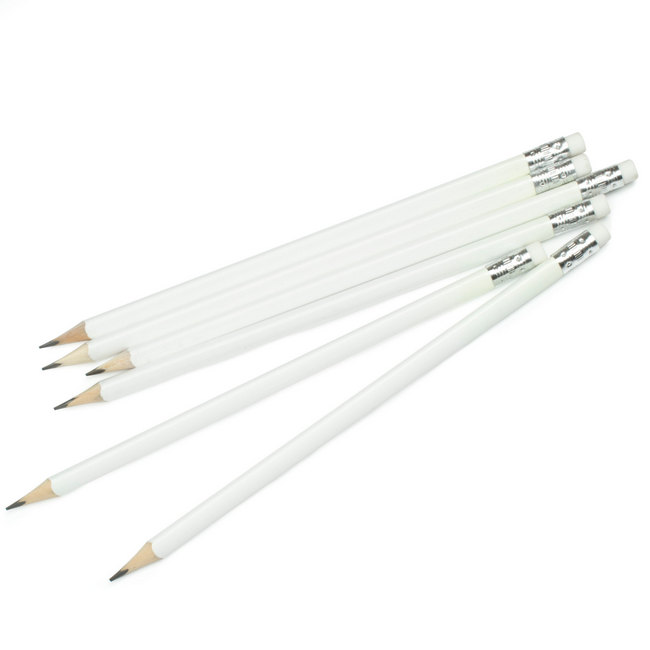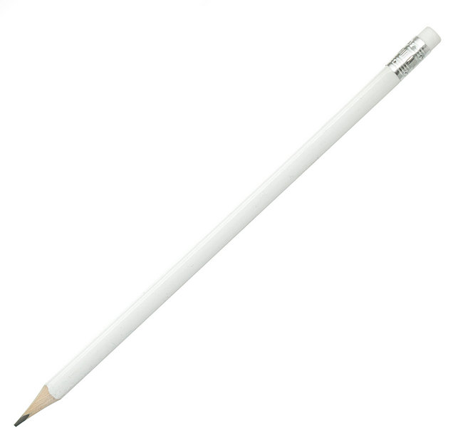 Олівець простий , тригранний , білий . Тамподрук на корпусі .