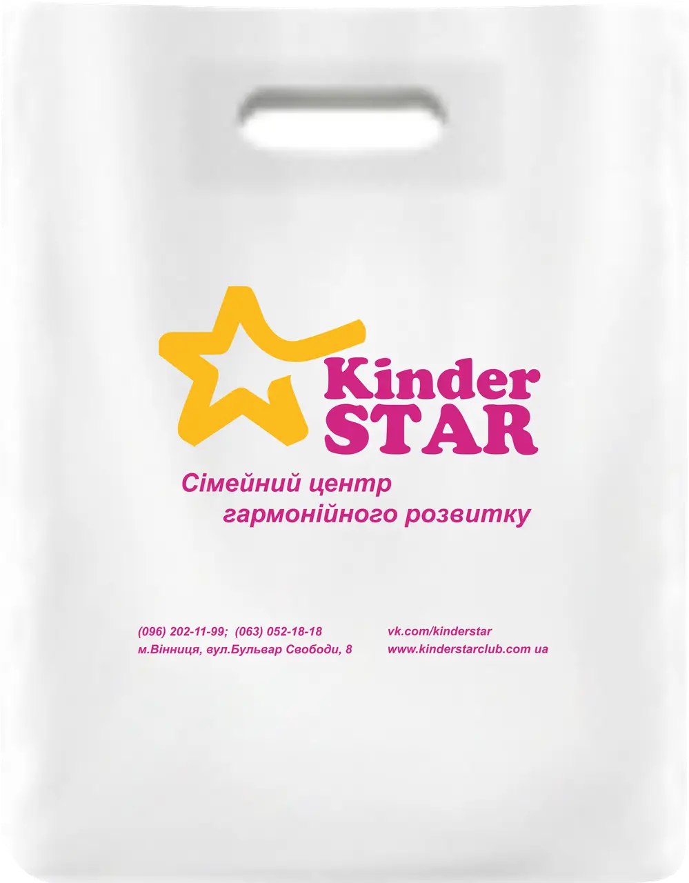 - Пакет 50 мікронів ВД (гладкий), укріплена ручка, подвійне дно.