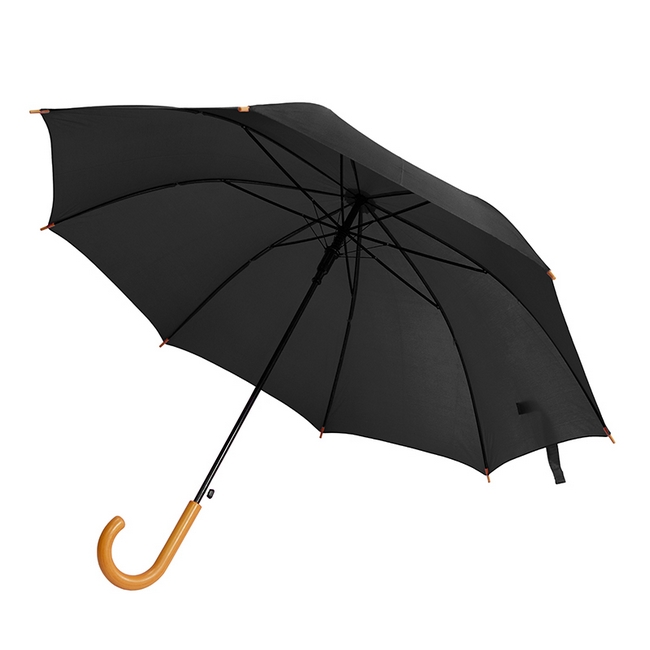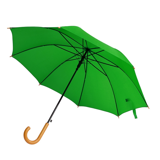 Тростина з дерев’яною ручкою. Механізм – напівавтоматичний . Термопереніс флекс плівкою в один колір .Колір парасолі на вибір .