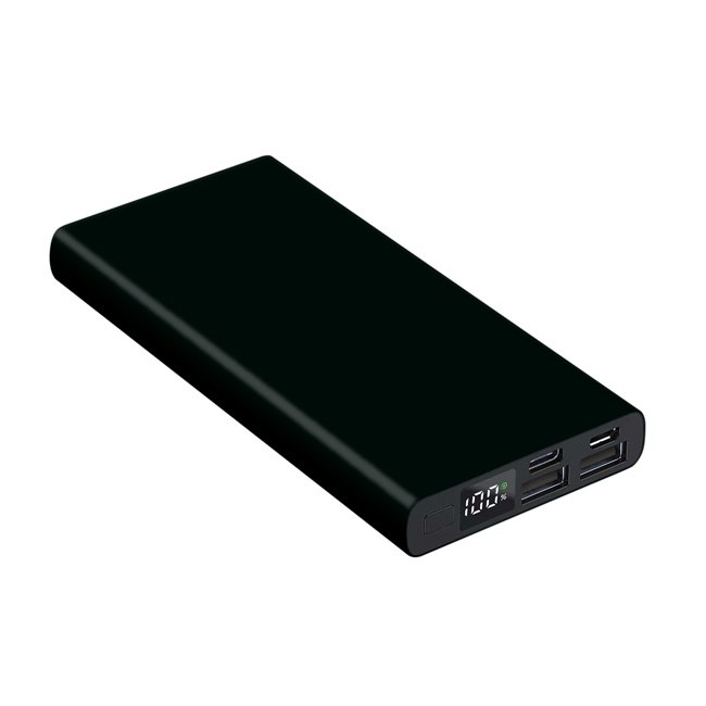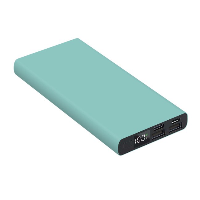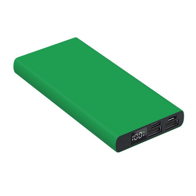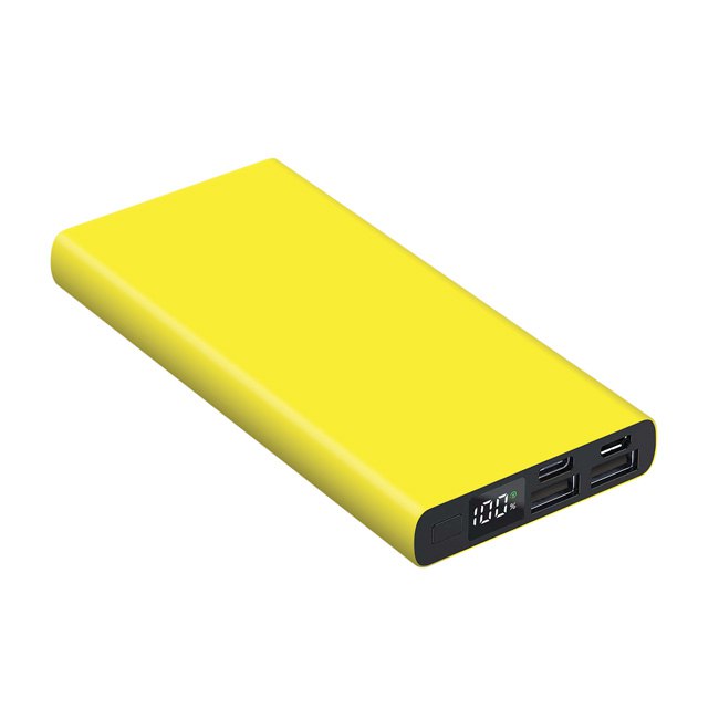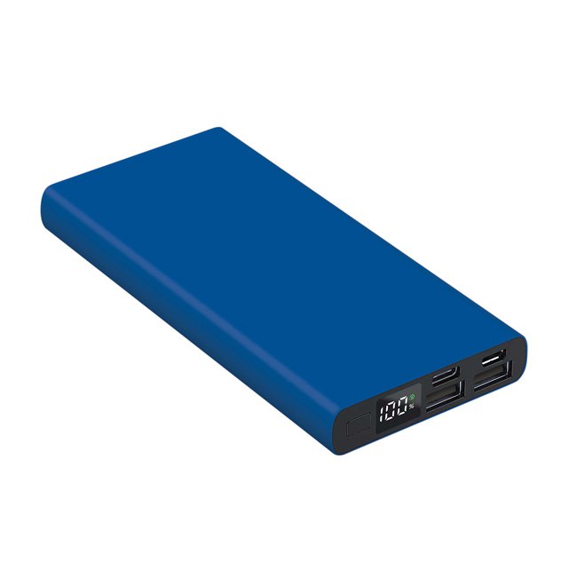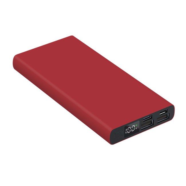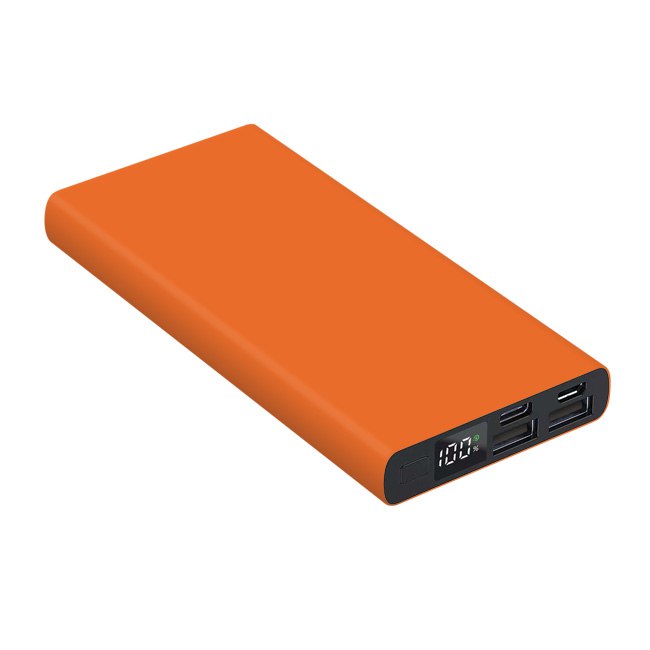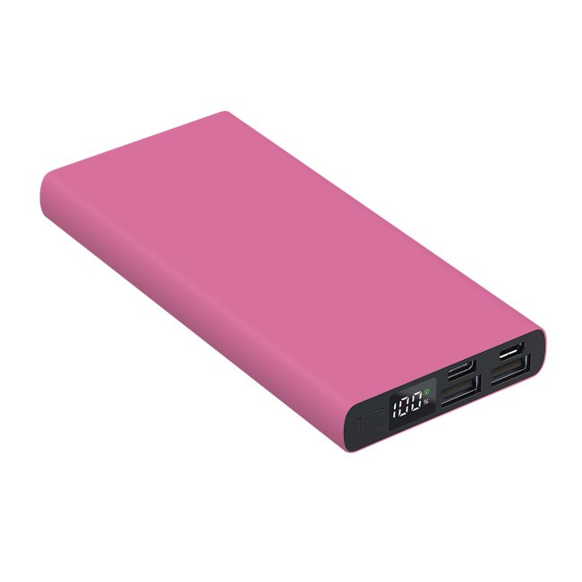 Універсальна мобільна батарея Power Bank 10000 мAh з матовим покриттям . Розмір 141* 67* 16 мм. Колір в асортименті. Алюмінієвий корпус цифровий індикатор зарядної батареї Li-Pol – 10000 мАч; Вхід (Micro+Type-C): 5V/2A; Вихід (Dual USB): 5V/2.0A; робоча температура -10°C / +45°C. Гравірування на корпусі .