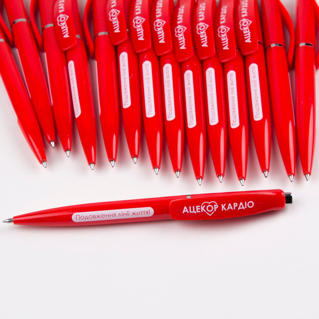 Ручка пластикова “Khvylya”. Довжина – 133 мм (144 мм) . Діаметр – d11,3. Колір в асортименті . Уф друк .