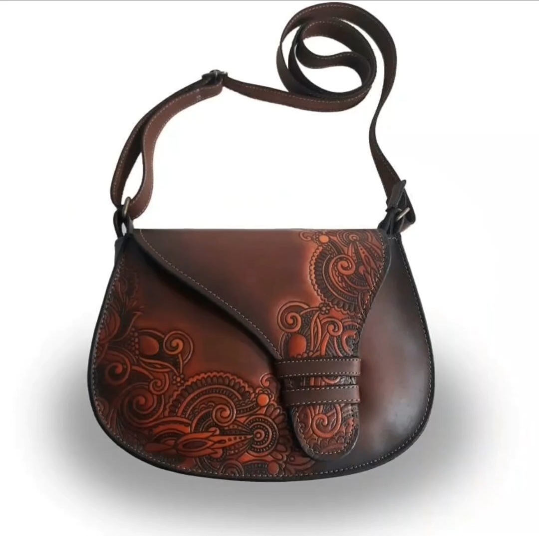 Стильна сумка “Hollywood” виконана із натуральної шкіри ручної роботи. Розмір сумки 27*21*6 см . Регульований ремінь . Малюнок зроблений за допомогою випалювання , тиснення та розпису .