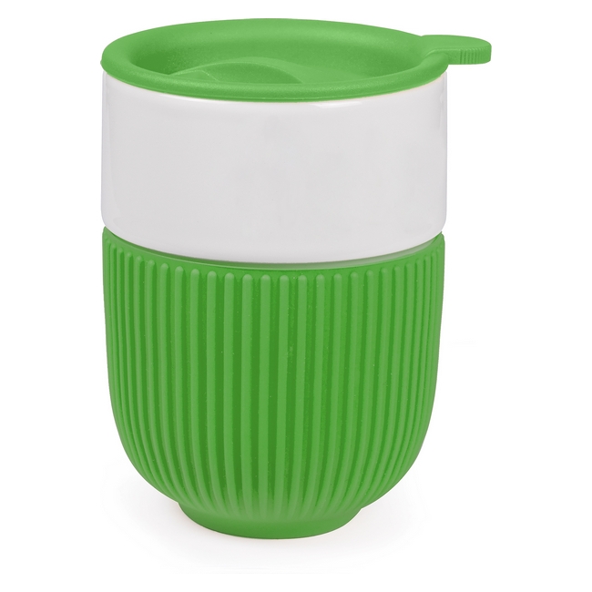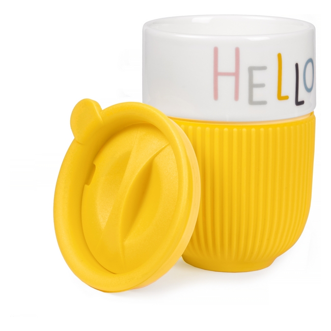 Чашка керамічна з поліпропіленовою кришкою та кольоровим силіконовим поясом. Колір на вибір . Обєм -350 мл . Друк -Деколь. Ціна вказана за одиницю .